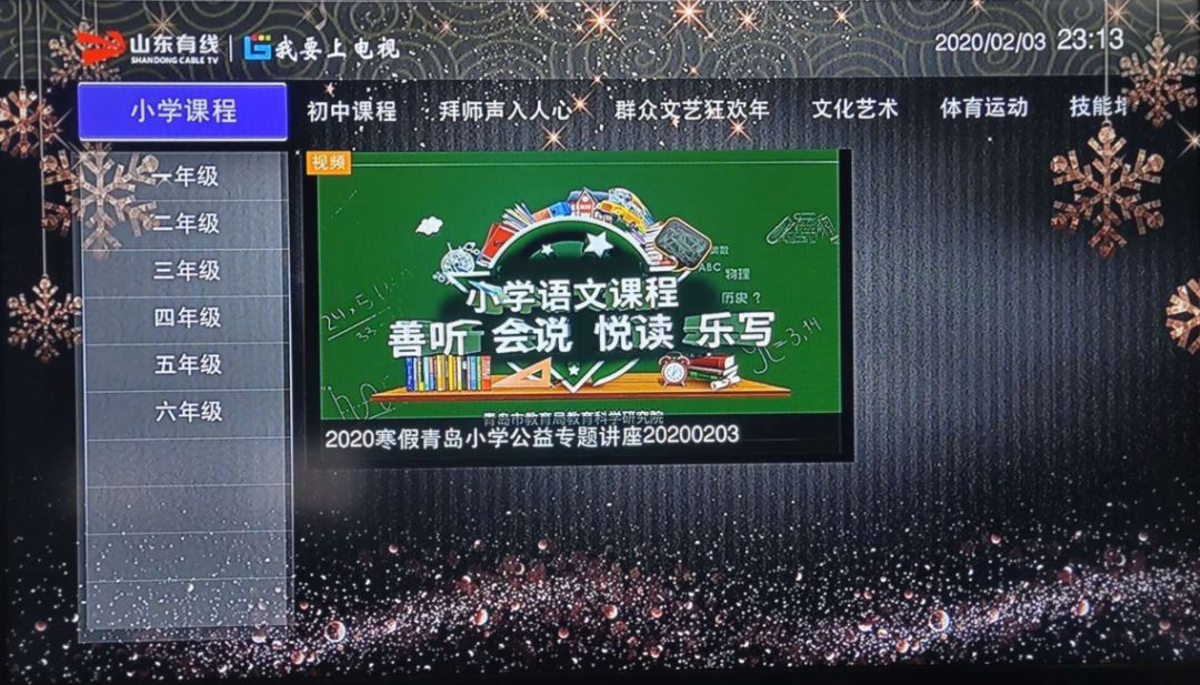 日前,由青岛市教育局组织的中小学“空中课堂”讲座已经在青岛有线平台上线,学生可以通过家里的电视机进行收看,非常方便。同时,青岛有线互动点播也会每天及时更新课程内容,保证孩子及时点播学习。