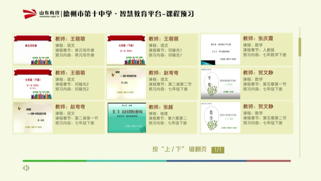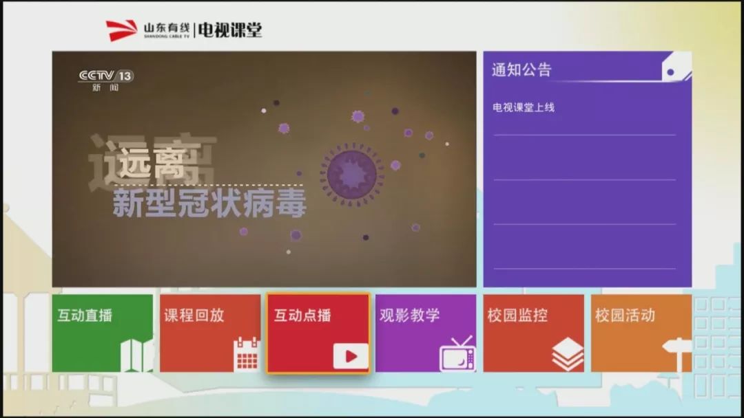 为此,在新型冠状病毒肺炎疫情防控期间,为满足中小学生在家、在线的学习需求,山东有线积极行动,对接各地教育局和学校,及时开启“空中课堂”,在互动点播平台中实时上传各地市教育部门提供的优质免费教辅资源。