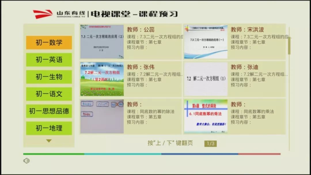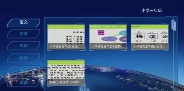●有线互动电视首页菜单-左下角“电视课堂”-选择对应的区县年级段-选择学习的学科及课程。