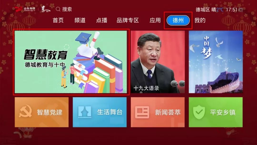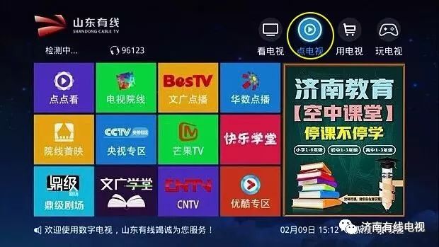 ●普通机顶盒进入方式:有线电视菜单首页—点电视—济南教育空中课堂—选择年级。