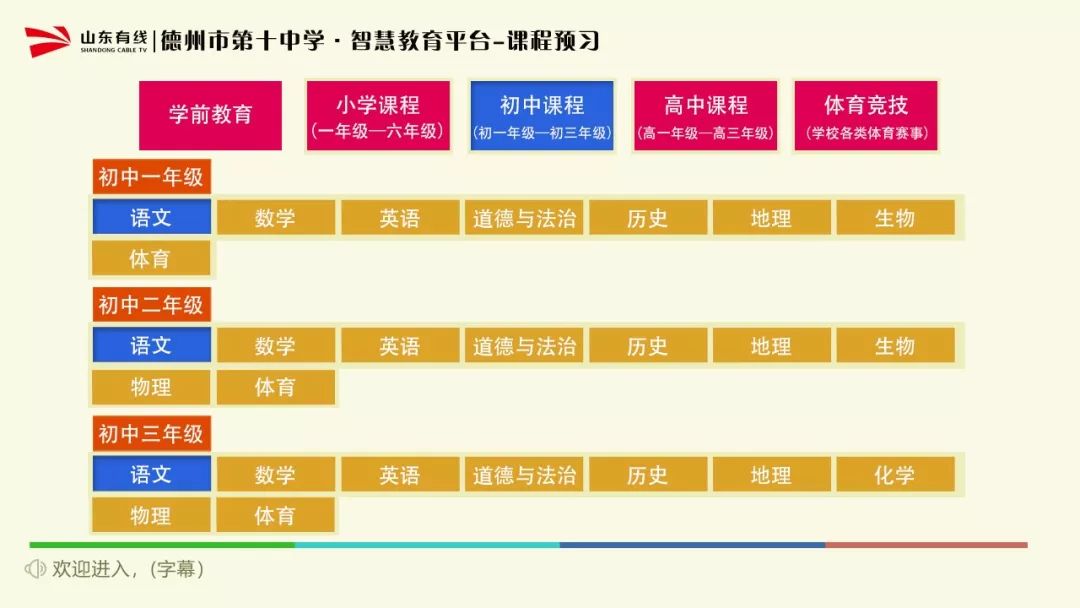 ●智能云机顶盒进入方式:有线电视菜单首页—济南教育空中课堂—选择年级。