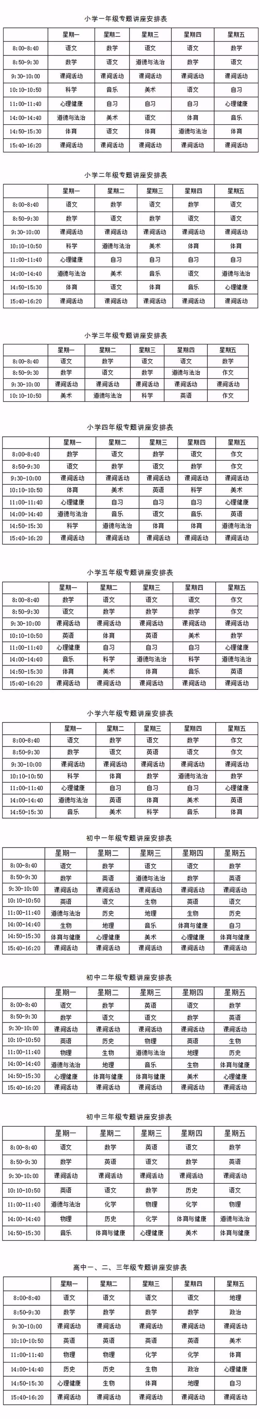 高三专题讲座课程表
